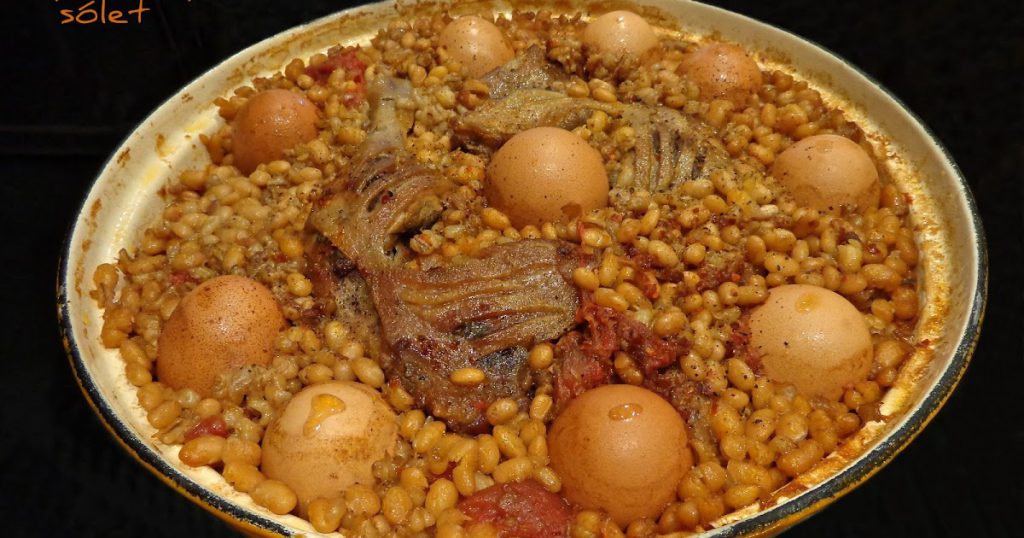Tartalmas, laktató egytálétel. Nehéz ugyan, de olyan főétel, ami mindenkit levesz a lábáról. Hozzávalók 8 adag 500 g marhaszegy, vagy marhacomb felkockázva 1-2 db velős csont, vagy marha húsos csont 250 g főtt füstölt libacomb 500 g szárazbab (tarka és fehér bab vegyesen) 150 g gersli 8 tojás 3 fej hagyma 3 evőkanál libazsír 6 gerezd fokhagyma 4-5 db babérlevél 600-700 ml […]