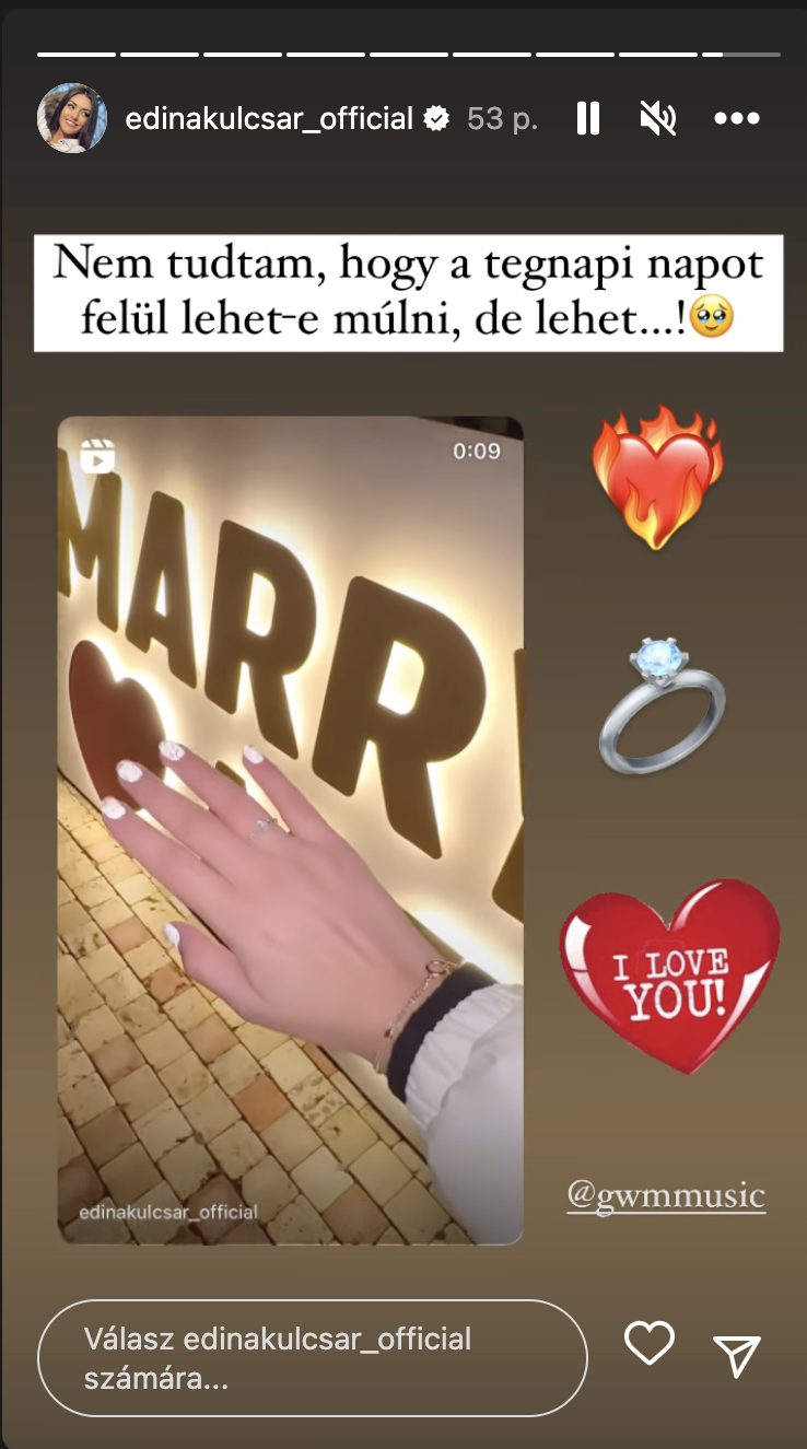 Sokan nem jósoltak nagy jövőt Kulcsár Edina és G.w.M. kapcsolatának, azonban a sztárpár rácáfolt mindenre. Hamarosan megszületik kislányuk, csütörötökön pedig Edina bejelentette, hogy eljegyezte a szerelme.