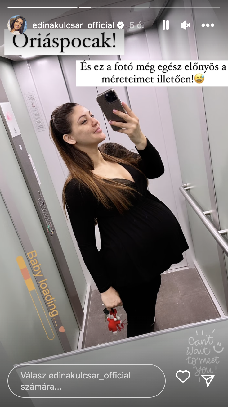 Az egykori szépségkirálynő most a 24 órán keresztül elérhető Instagram – sztorijában mutatta meg hatalmas terhespocakját.